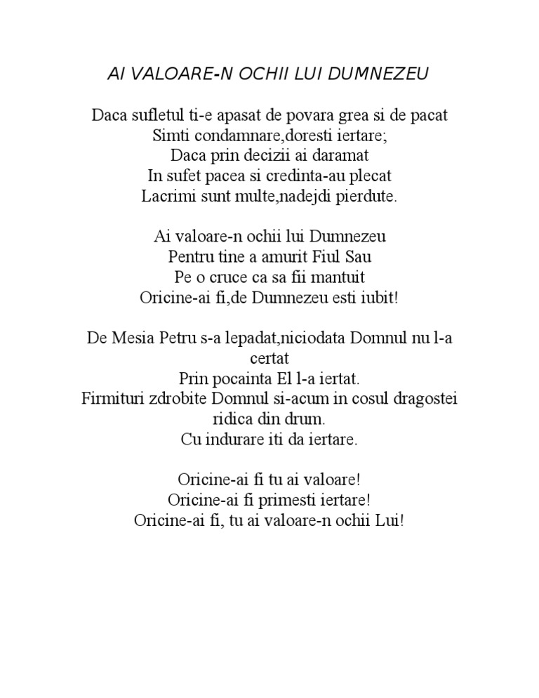 Ai Valoare N Ochii Lui Dumnezeu Chords Chordify