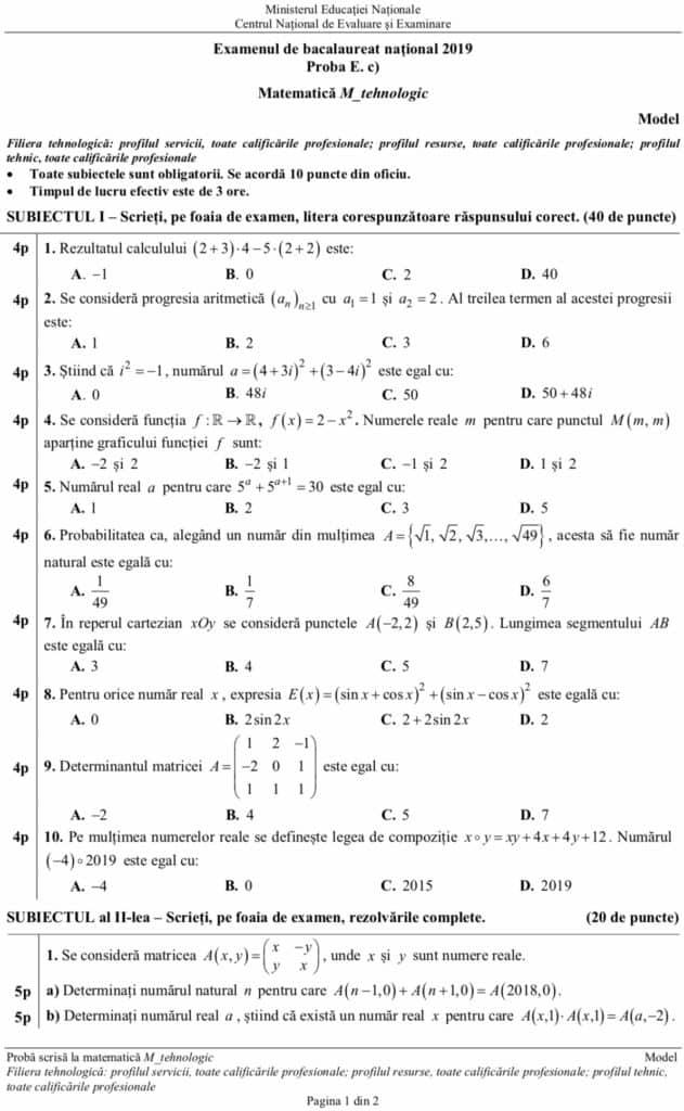Update Simulare Bac 2019 Matematică Avem Subiectele La Clasa A Xii A