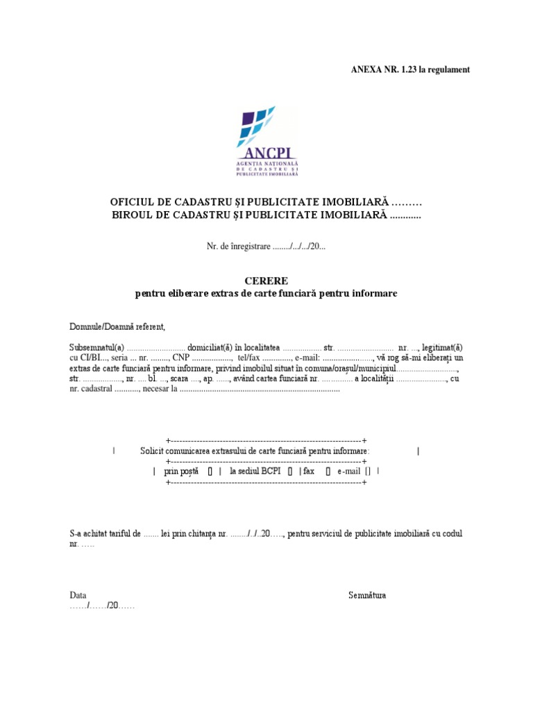 Cerere Eliberare Extras De Carte Funciara Pentru Informare Anexa22