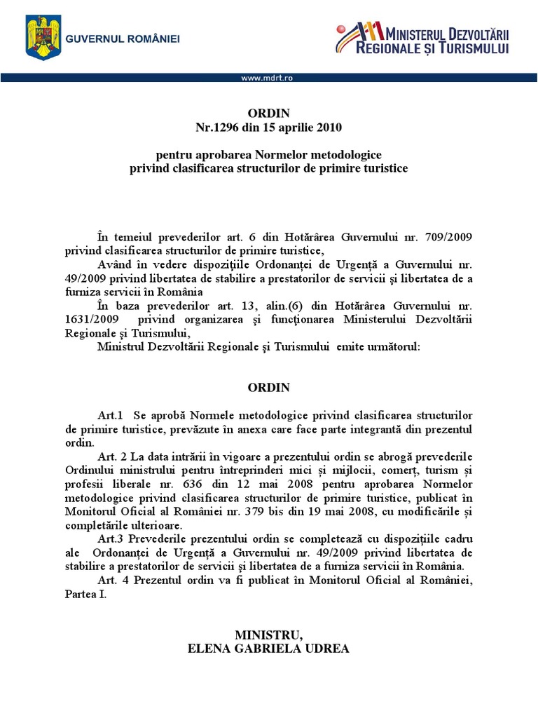 Ordin 1296 2010 Clasificarea Unitatilor De Cazare Pdf