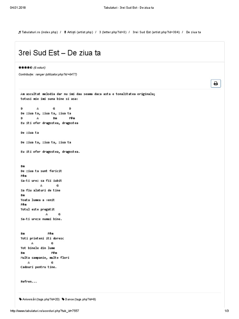 Tabulaturi 3rei Sud Est De Ziua Ta