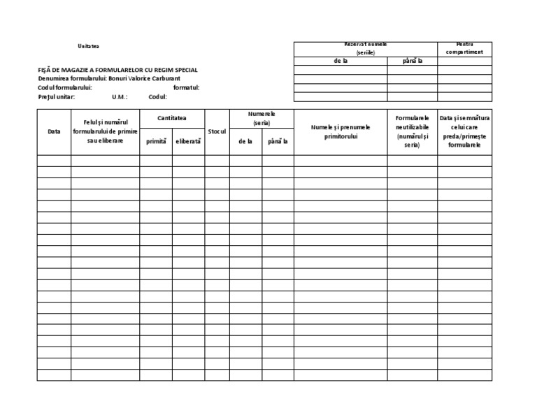 Fisa De Magazie A Formularelor Cu Regim Special Duplex Formular Preturi
