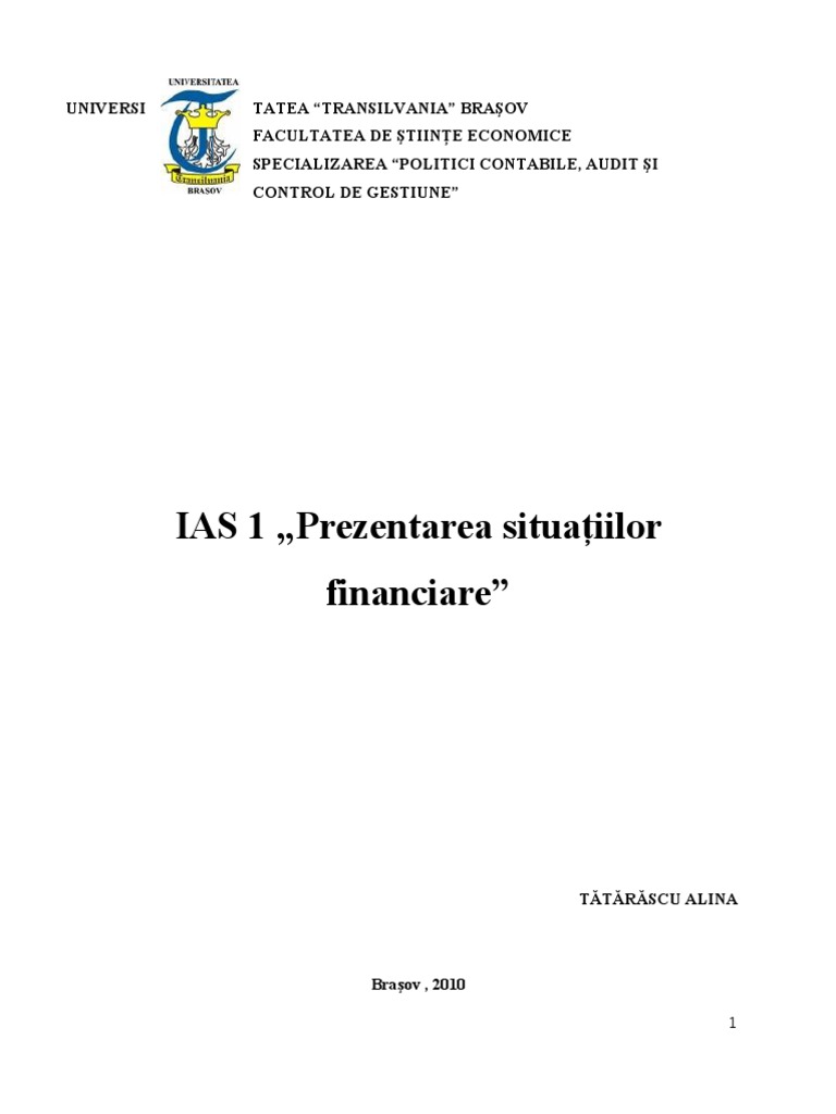 Proiect Ias 1 Prezentarea Situatiilor Financiare Economie 377205