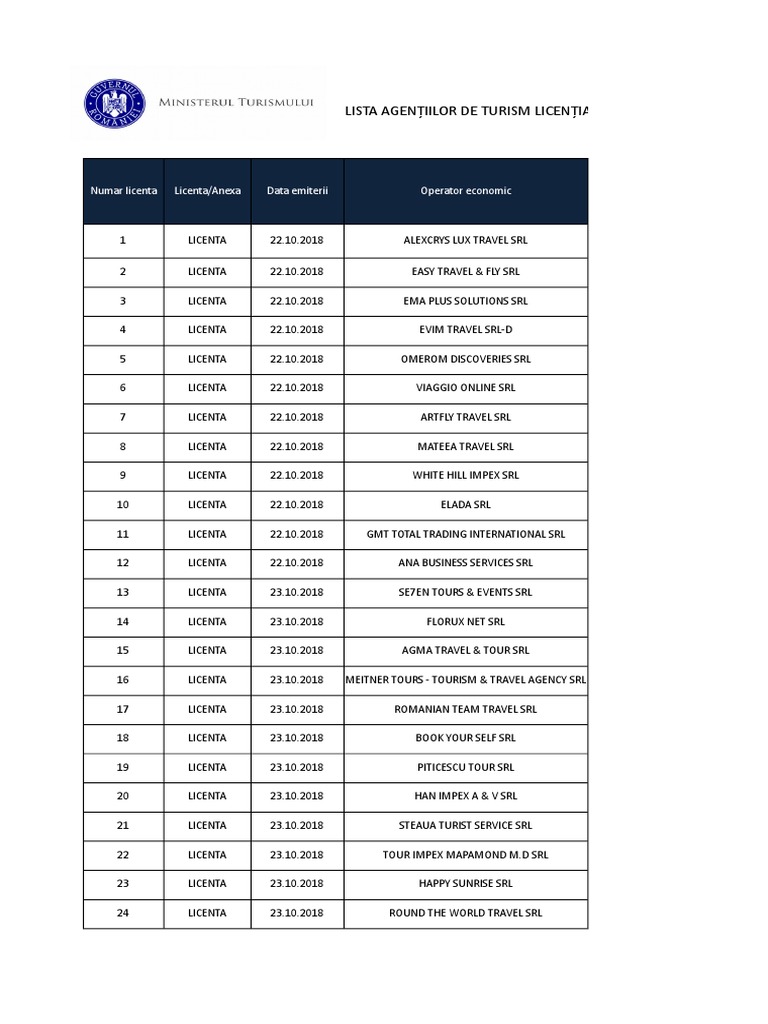 Lista Agentiilor De Turism Licentiate Organiz
