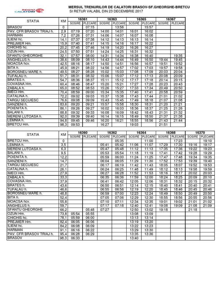 Mersul Trenurilor De Calatori Brasov Sf Gheorghe Bretcu Sosire Plecare Sosire Plecare Sosire Plecare Sosire Plecare