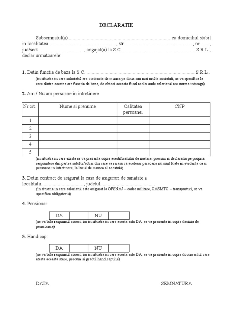 Declaratie Angajat Nou