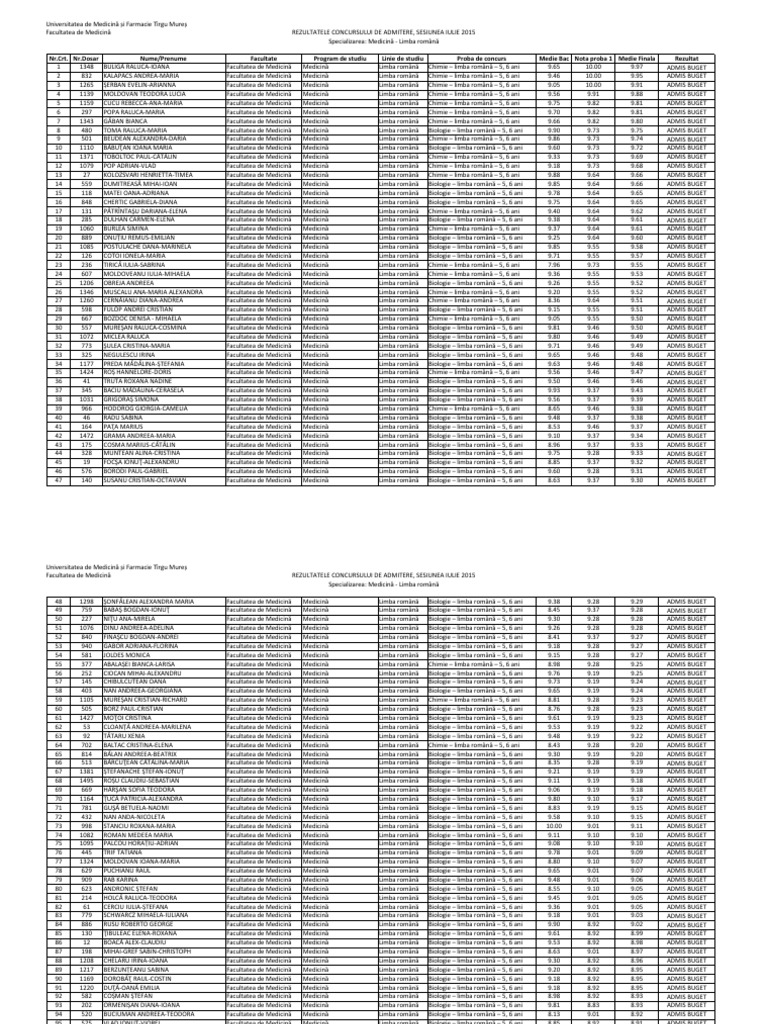 Admitere Medicina Targu Mures 2015